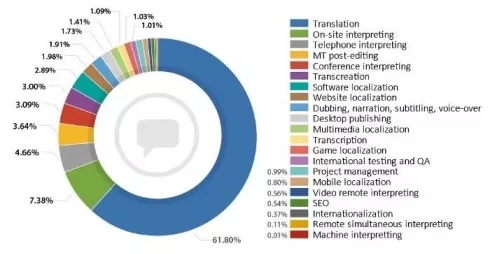 大數(shù)據(jù)時代之下,翻譯公司為了更全面、快速服務(wù)客戶,化身成“語言服務(wù)供應(yīng)商” (LSP),涵蓋一切語言相關(guān)服務(wù),如下圖所示,類型日漸多元,洋洋灑灑逾二十項。