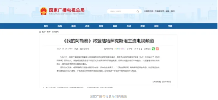 據(jù)國家廣播電視總局消息,5月27日,愛奇藝與哈薩克斯坦7頻道(tv7)在哈薩克斯坦共同舉行了《我的阿勒泰》簽約儀式。該劇哈語配音版將于6月正式在哈薩克斯坦7頻道首播,后續(xù)也將登陸哈巴爾電視臺、31頻道等當?shù)刂髁麟娨暸_,面向哈薩克斯坦全國觀眾播出。