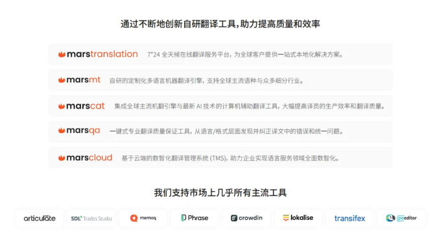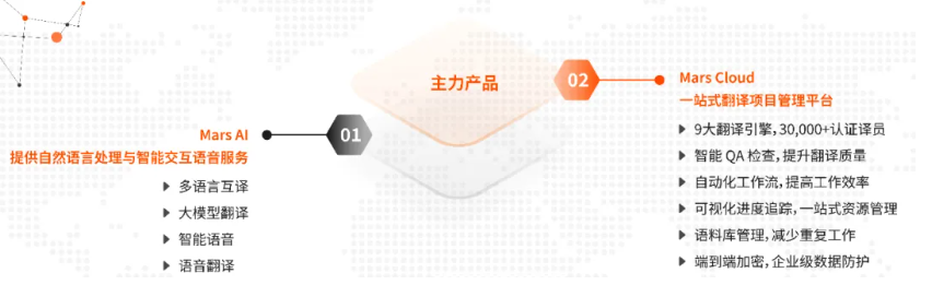 作為全球領(lǐng)先的數(shù)智化語(yǔ)言服務(wù)與技術(shù)解決方案提供商,火星語(yǔ)盟位列全球語(yǔ)言服務(wù)商第33名、亞太區(qū)第8名,穩(wěn)居國(guó)內(nèi)翻譯行業(yè)第一梯隊(duì),年交付口筆譯項(xiàng)目20萬(wàn)個(gè),年翻譯字?jǐn)?shù)超5億,覆蓋了英語(yǔ)、俄語(yǔ)、日語(yǔ)、法語(yǔ)、德語(yǔ)、西班牙語(yǔ)、葡萄牙語(yǔ)等230+語(yǔ)種,累計(jì)為全球5000多家中大型行業(yè)客戶提供多快好省的翻譯服務(wù),持續(xù)賦能國(guó)際工程、醫(yī)療健康、制造業(yè)、大文娛、法律、財(cái)經(jīng)等領(lǐng)域的全球化戰(zhàn)略落地。